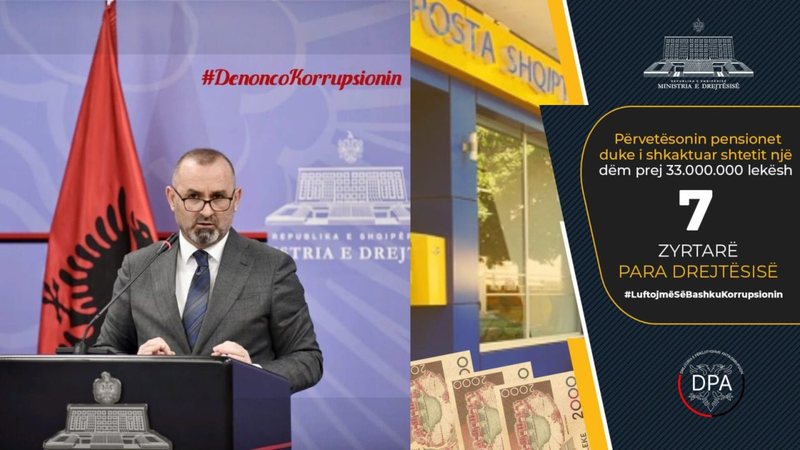 Sipas ministrit, agjentët e Antikorrupsionit kanë çuar para drejtësisë 7 punonjës të Postës Shqiptare në Dibër, Shkodër, Tropojë, të cilët përvetësonin ndihmën ekonomike, pagesat për personat me aftësi të kufizuar dhe pensionet e atyre që jetojnë jashtë vendit.