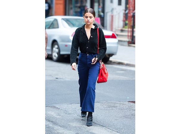 Flared jeans e bootcut, duke u hapur poshtë gjurit, rivendosin menjëherë një ekuilibër të siluetës: cepat e pantallonave nuk duhet të bien kurrë shumë të ngushta në proporcion me ijët.