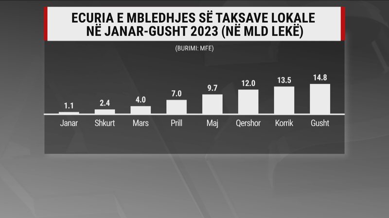 Në qershor, korrik dhe gusht, 61 bashkitë arkëtuan mesatarisht 13.5 miliardë lekë çdo muaj nga taksat. (A2 Televizion)