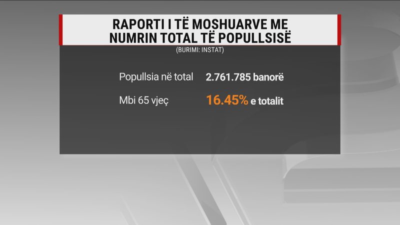 Një në gjashtë shqiptarë është i moshuar. Në raport me numrin e popullsisë rezidente e cila përllogaritet në pak më shumë se 2.7 milionë banorë, personat mbi 65 vjeç zënë 66.5 për qind të totalit. Një pjesë e tyre, kryesisht pa pasardhës apo të afërm të tjerë jetojnë në Institucionet Rezidenciale për të Moshuar, njohur ndryshe si azile. Që prej vitit 2018 atyre iu është përcaktuar një kuotë ditore për t’u ushqyer në vlerën e 360 lekëve apo 10 mijë e 800 lekë në muaj.
