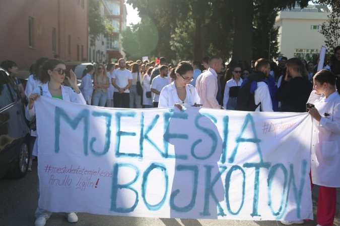 Në emisionin “Debat” të kësaj të mërkure në A2 CNN po diskutohet në lidhje me protestën disa ditore tashmë të studentëve të mjekësisë, të cilët kundërshtojnë vendimin e qeverisë, sipas të cilës studentët do duhet të paguajnë tarifën prej 240 mijë lekëve në vit, ose do të detyrohen që të kryejnë tre vite punë në Shqipëri.