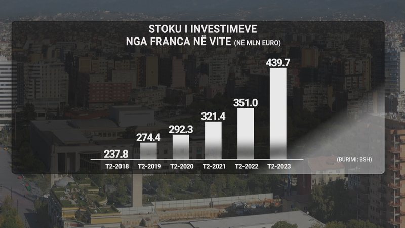 Shqipëria ka marrëdhënie ekonomike me Francën edhe në drejtim të investimeve, të cilat deri në qershor përllogariten në gati 440 milionë euro. Në raport me vitin 2018, investimet nga kompani franceze në Shqipëri janë thuajse dyfishuar.