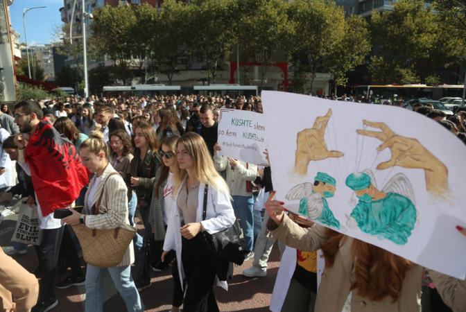 Studentët kanë nisur marshimin e tyre nga Universiteti i Mjekësisë, kanë vazhduar në qendër të kryeqytetit e më pas i janë drejtuar Ministrisë së Arsimit.
