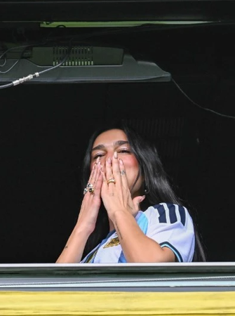 Ylli botëror i pop-it mbërriti në stadiumin “La Bombonera” e veshur me fanellën e re të kombëtares së Argjentinës, e shoqëruar nga pjesëtar të familjes që mbanin të njëjtën veshje. Ajo u ul në një nga lozhat VIP vetëm pak minuta para fillimit të ndeshjes, ndërsa atmosfera në stadium u ndez nga këngët, daullet dhe brohoritjet e pafund të tifozëve të Boca Juniors.
