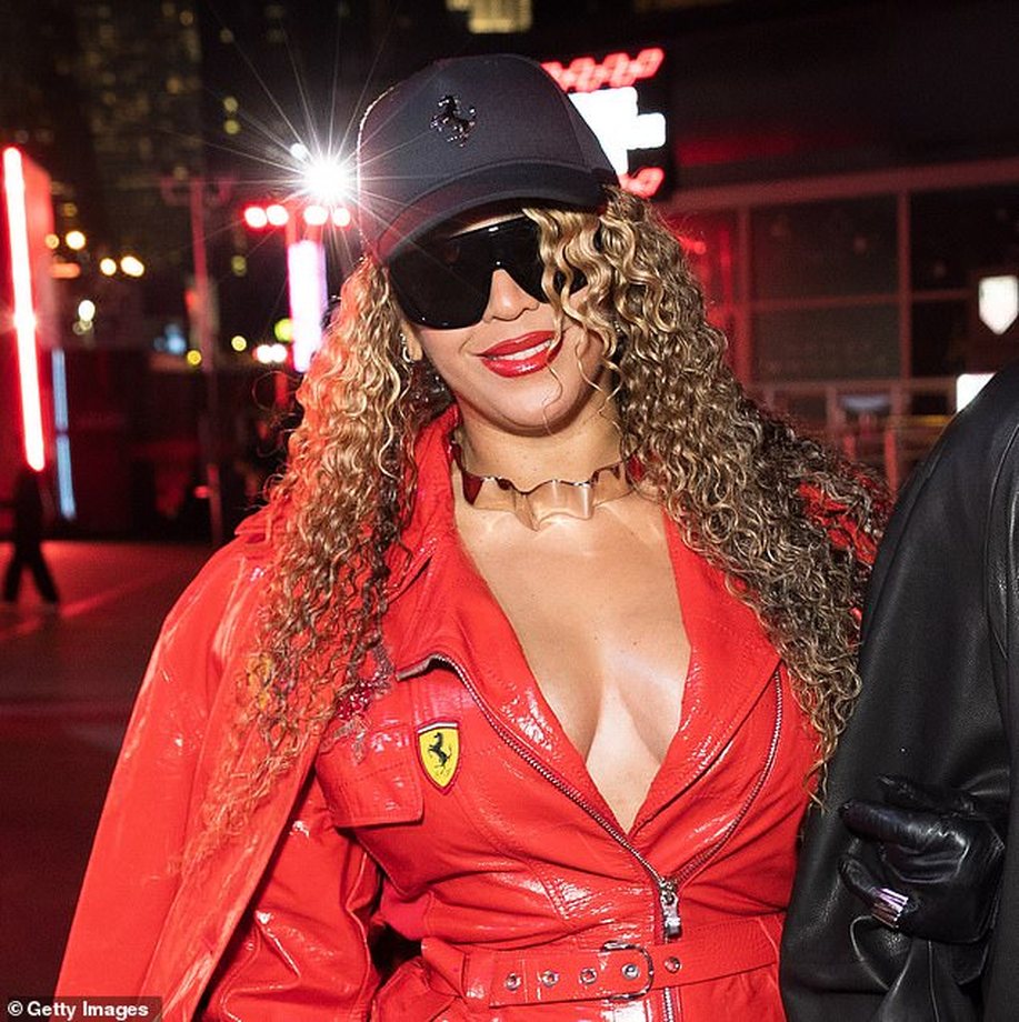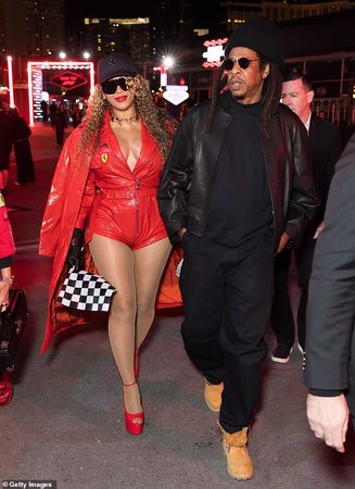 Beyoncé ishte e shoqëruar nga bashkëshorti i saj, Jay-Z, i cili zgjodhi një look totalisht të zi dhe minimalist. Çifti bëri edhe një hyrje të bujshme në pistë, ku këngëtarja u shfaq më herët me një kostum lëkure sportiv, i ngjashëm me veshjet e pilotëve.