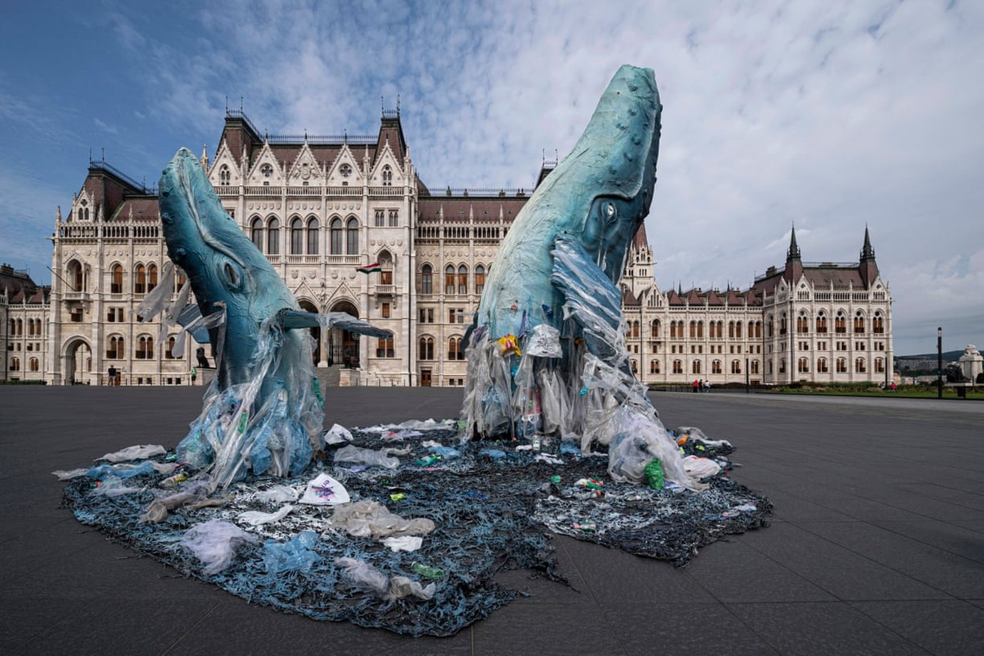 Skulptura balenash nga mbetjet plastike në Budapest – EPA