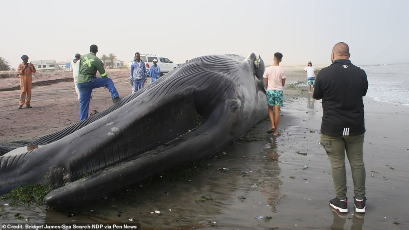 Një balenë gjigante blu ka dalë në breg në Namibi, hera e parë për një gjallesë të tillë.