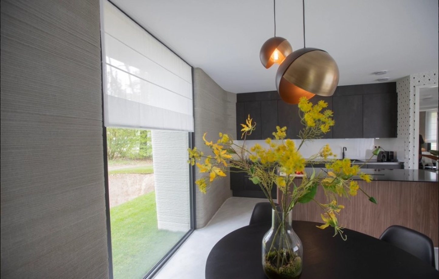 Megjithëse në pamje të parë ajo duket normale, shtëpia është realizuar nga një printer 3 dimensional për një periudhë kohore 5 ditore. (A2 Televizion)
