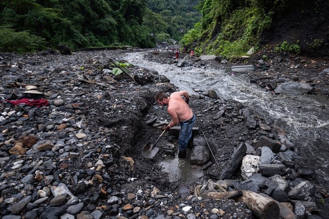 Gjuetarët shpresojnë (dhe shpesh janë me fat) të gjejnë mes llucës gurët e vegjël të çmuar me ngjyrë të gjelbër. Ata gërmojnë edhe me duar mes mbetjeve për të zbuluar xhevahiret e vegjël.