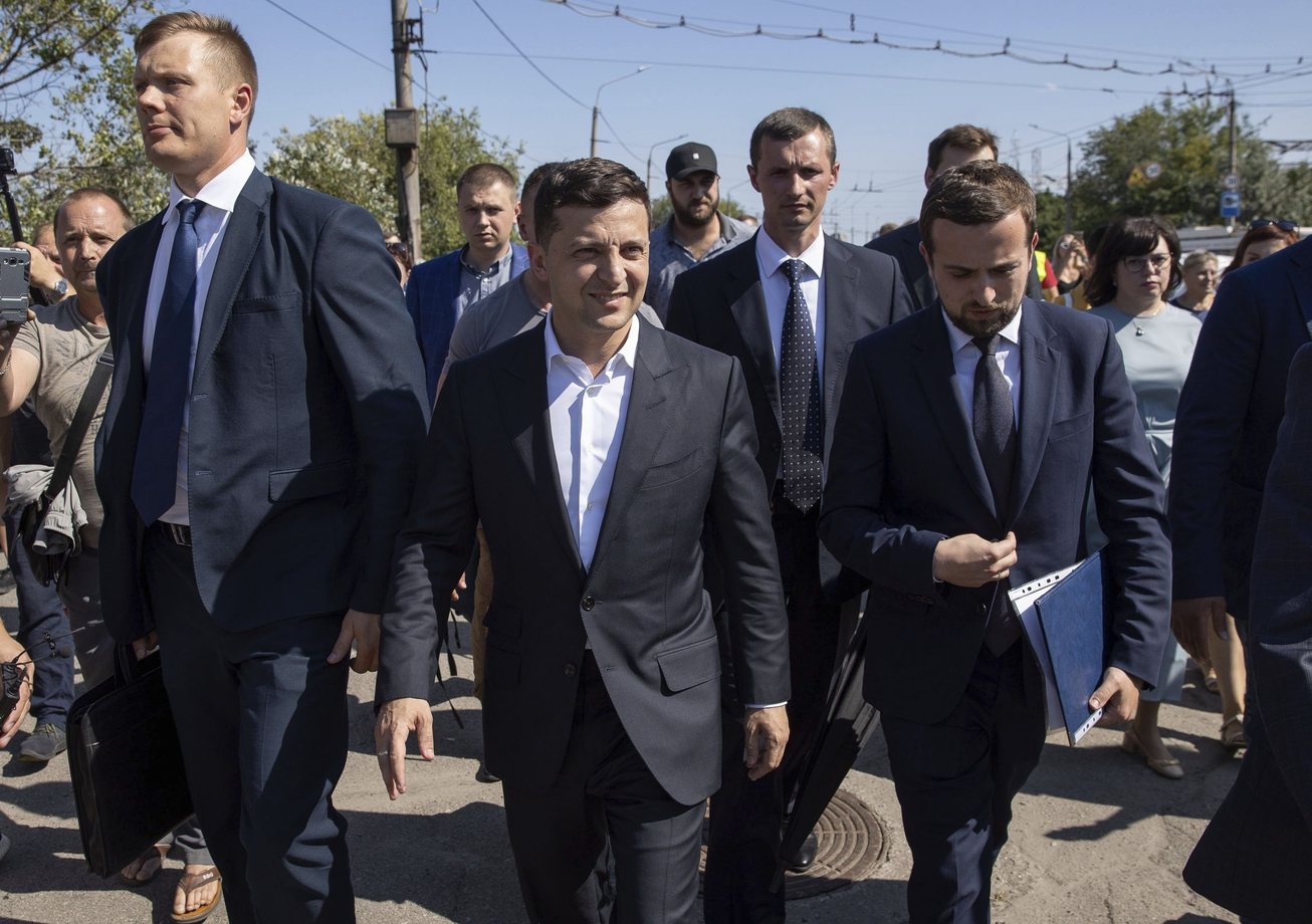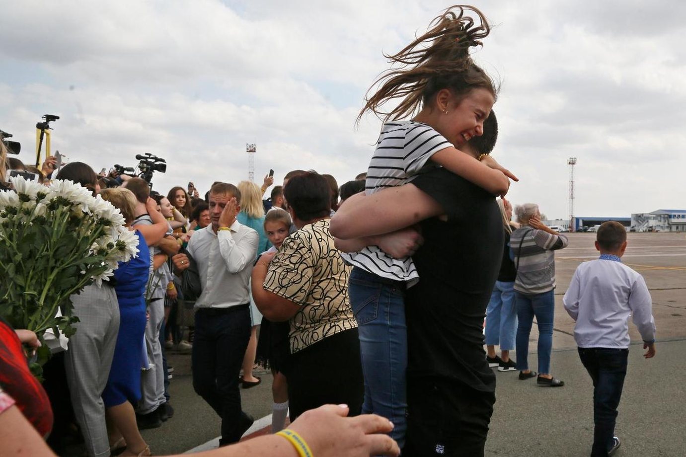 Presidenti ukrainas Volodimir Zelenski doli për të pritur te liruarit në aeroportin e Kievit. Ish komediani e ka vënë fundin e konfliktit me separatistët ukrainas në krye të axhendës së tij, dhe në lehtësimin e tensioneve mes dy fqinjëve.