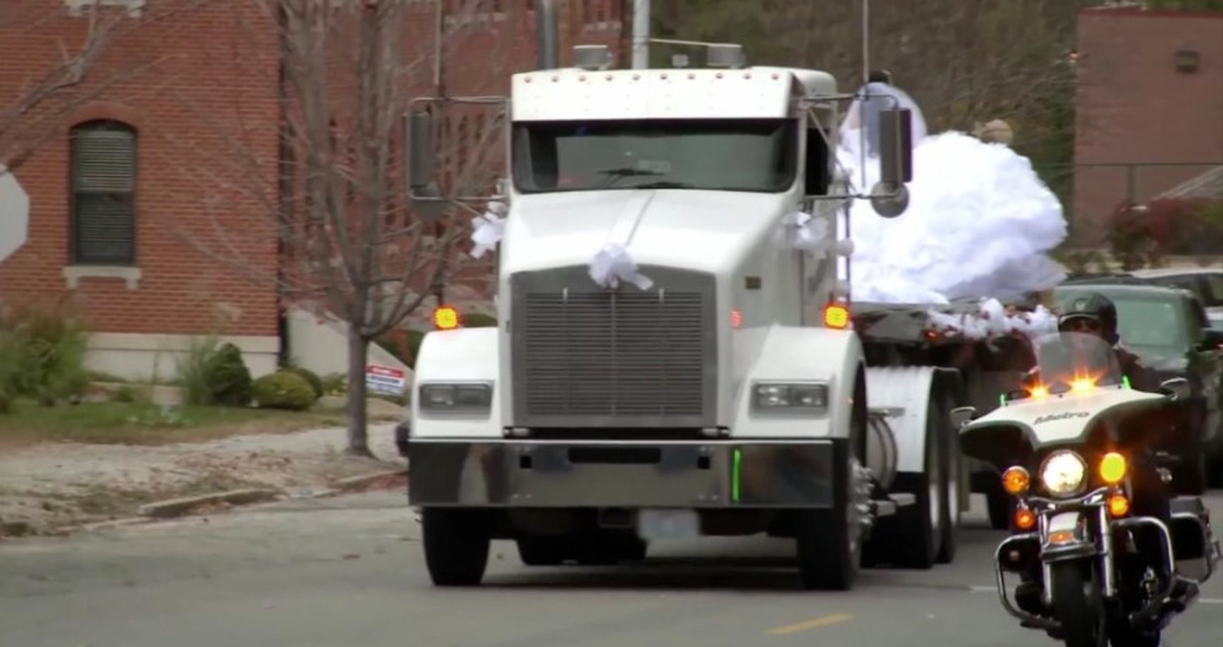 Një 25-vjeçare në Missouri u detyrua të pajtonte një kamion 16 metra të gjatë në ditën e dasmës, pasi fustani i nusërisë ishte shumë i gjatë dhe ishte e pamundur që të ecte me të.