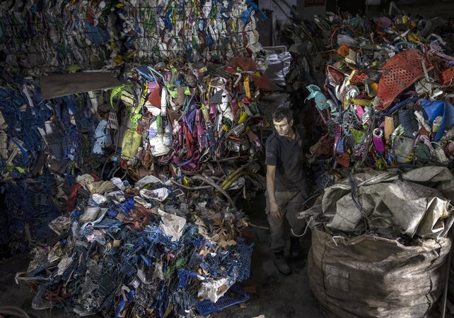 Punëtori mbledh mbetje plastike për ricklim, Turqi / Getty