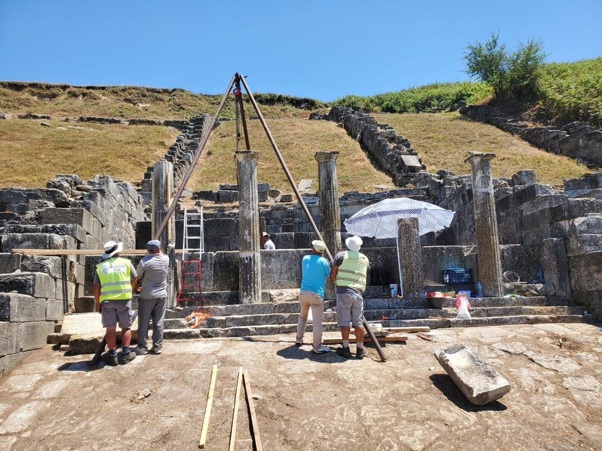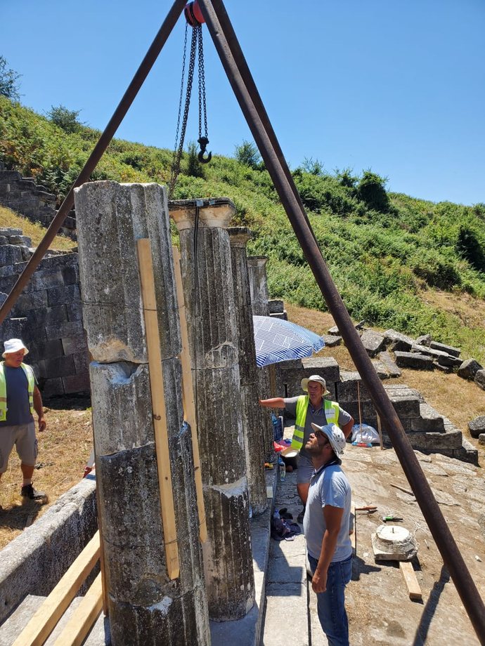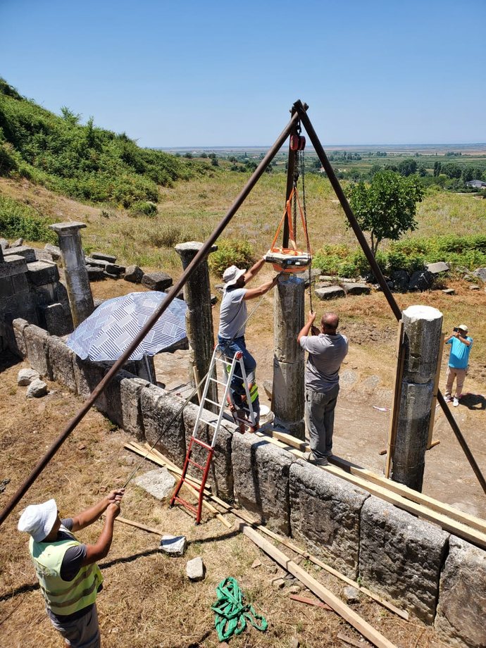 Aktualisht janë ringritur në vertikalitet të dyja kolonat e rrëzuara, duke realizuar ngjitjen e tamburëve dhe kapiteleve përkatëse.
