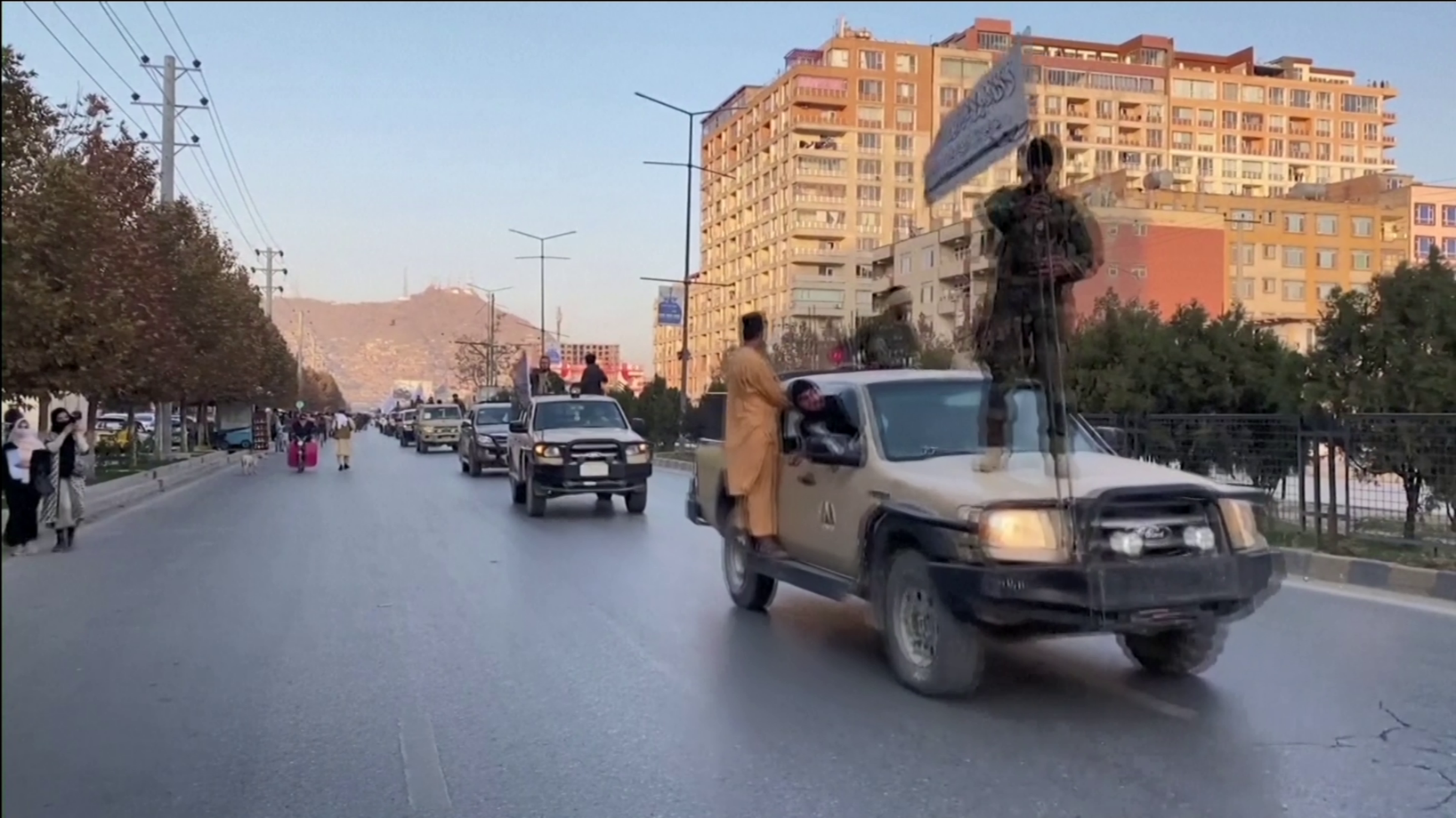 Trupat amerikanë shkatërruan dhjetëra makina dhe avionë e helikopterë nga bazat e tyre teksa largoheshin, por përsëri shumë mjete ranë nën kontrollin e Talebanëve. Grupi i konsideruar si terrorist nga Shtetet e Bashkuara vepronte prej 2 dekadash në vend dhe kundërshtonte pushtimin amerikan të vitit 2001. Sot pretendojnë të shndërrohen në një ushtri të rregullt, për të mbështetur qeverinë e tyre në Afganistan. (A2 Televizion)