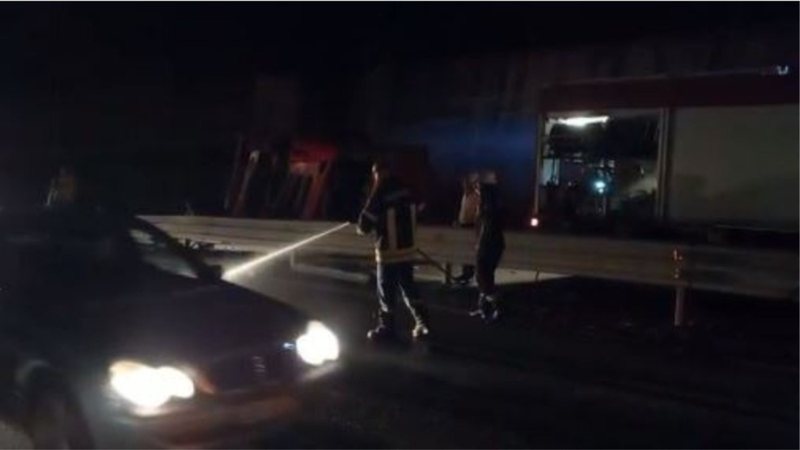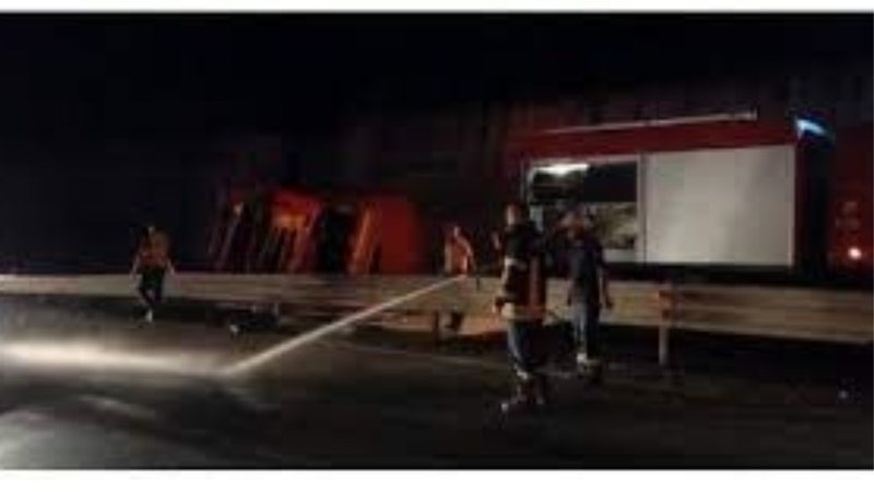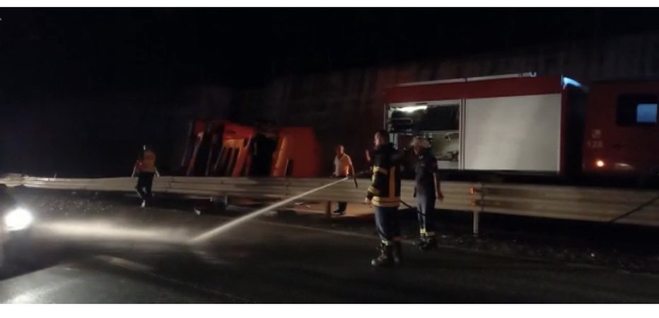 Forcat zjarrfikëse dhe policia në vendngjarje. Për shkak të aksidentit është devijuar kalimi nga ura 6 metroshe.