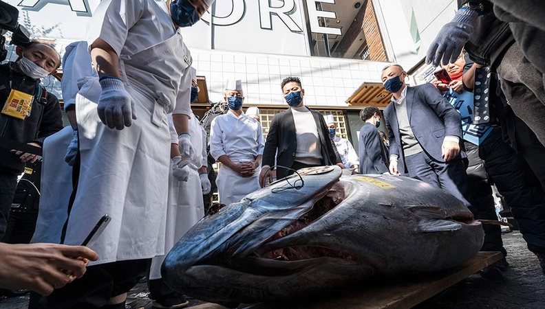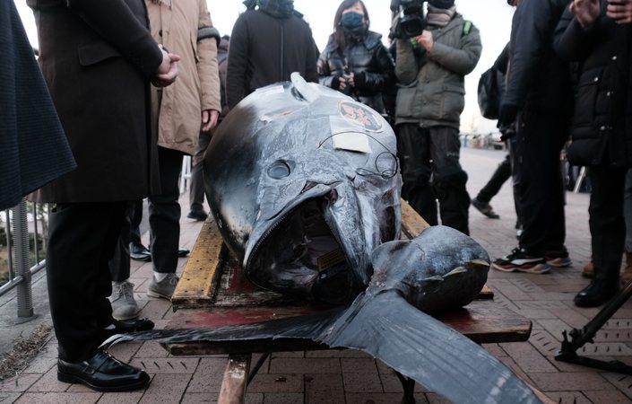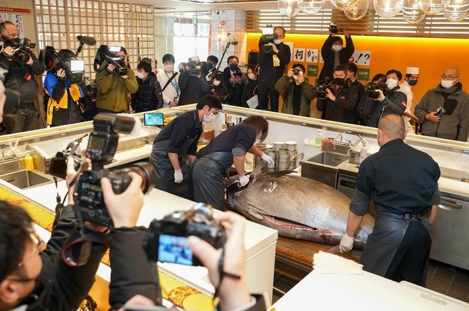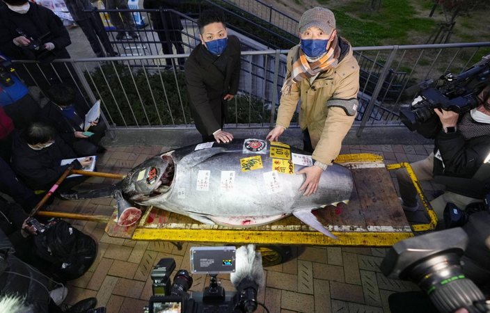Një ton i kuq është shitur për 36,04 milionë jen (rreth 257 000 euro) në ankandin tradicional të vitit në tregun e peshkut Toyosu, në Tokio (Japoni).