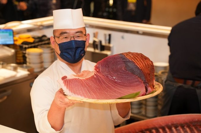 Kompania e shitjes me shumicë me bazë në Tokio, Yamayuki, dhe zinxhiri Ginza Onodera, me degë në Kinë dhe Shtetet e Bashkuara, ishin ata që bënë ofertën më të lartë të përbashkët për të marrë tonin, i cili u kap në ujërat pranë portit të Omas, në Aomori.