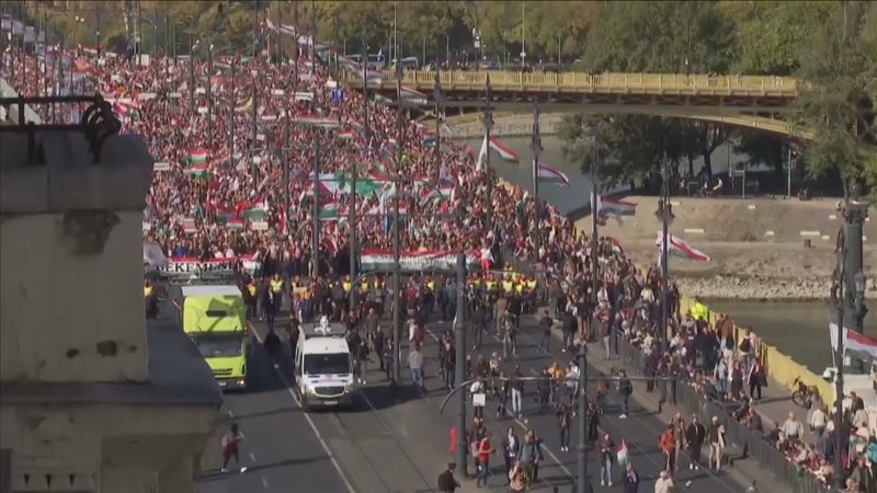Dhjetëra mijëra mbështetës të Victor Orban marshuan në Budapest të enjten për të treguar mbështetjen ndaj kryeministrit nacionalist teksa ai përballet me kërcënimin më të madh ne udhëheqjen 15 vjeçare, nga një parti opozitare pro BE, në prag të zgjedhjeve të 2026.