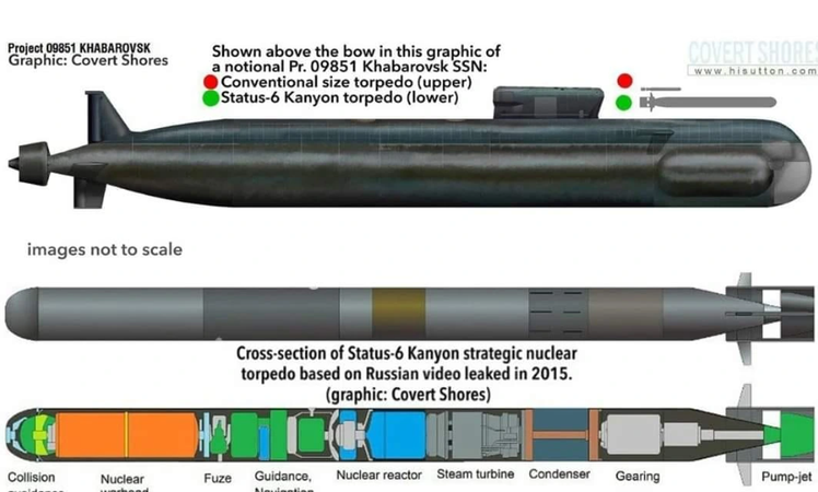 Nëndetësja e veçantë “Khabarovsk” është projektuar për të mbajtur deri në 12 torpedo vdekjeprurëse të këtij lloji të ri, secila e pajisur me reaktor bërthamor.