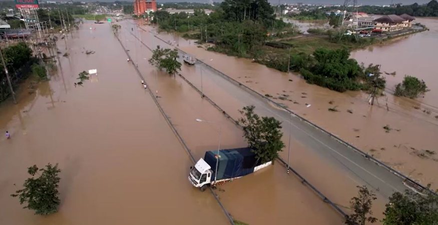 Pamjet e filmuara me dron nga Reuters të enjten (27 nëntor) treguan Hat Yai, një qendër tregtare në Tajlandën jugore, të zhytur në ujërat e përmbytjeve, ndërsa operacionet e kërkim-shpëtimit u intensifikuan.