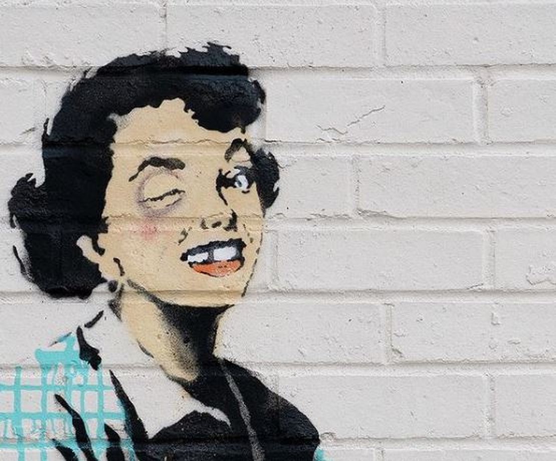 Me rastin e Ditës së Shën Valentinit, artisti i rrugës donte të dërgonte një mesazh kundër dhunës ndaj grave duke përshkruar një shtëpiake stereotipike të viteve 1950 me sy të nxirë dhe një dhëmb që i mungon, e cila mbyll kapakun e një frigoriferi të vjetër nga i cili dalin një palë këmbë. Janë ato të burrit të saj që e katandisi kështu.