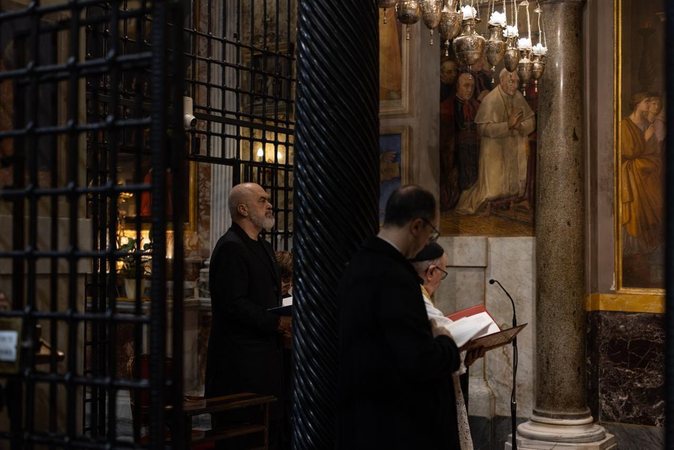 “Vizita në Vatikan për takimin me Atin e Shenjtë, nisi sot nga Genazzano, në bazilikën e famshme, ku gjendet shembëlltyra e Zojës së Këshillit të Mirë, mbi një copë të shkëputur nga muri i Kishës së Shkodrës në vitin e largët 1467”, shkruan Rama në rrjetet sociale krahas fotove.