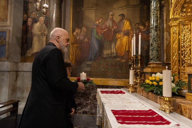 Kryeministri Edi Rama ka ndarë në rrejtet sociale pamje nga vizita e tij në Vatikan. I shoqëruar nga bashkëshortja Linda Rama dhe djali i tij Zaho, kreu i qeverisë njofton se vizita nisi në bazilikën e famshme, ku gjendet shembëlltyra e Zojës së Këshillit të Mirë, mbi një copë të shkëputur nga muri i Kishës së Shkodrës në vitin 1467.