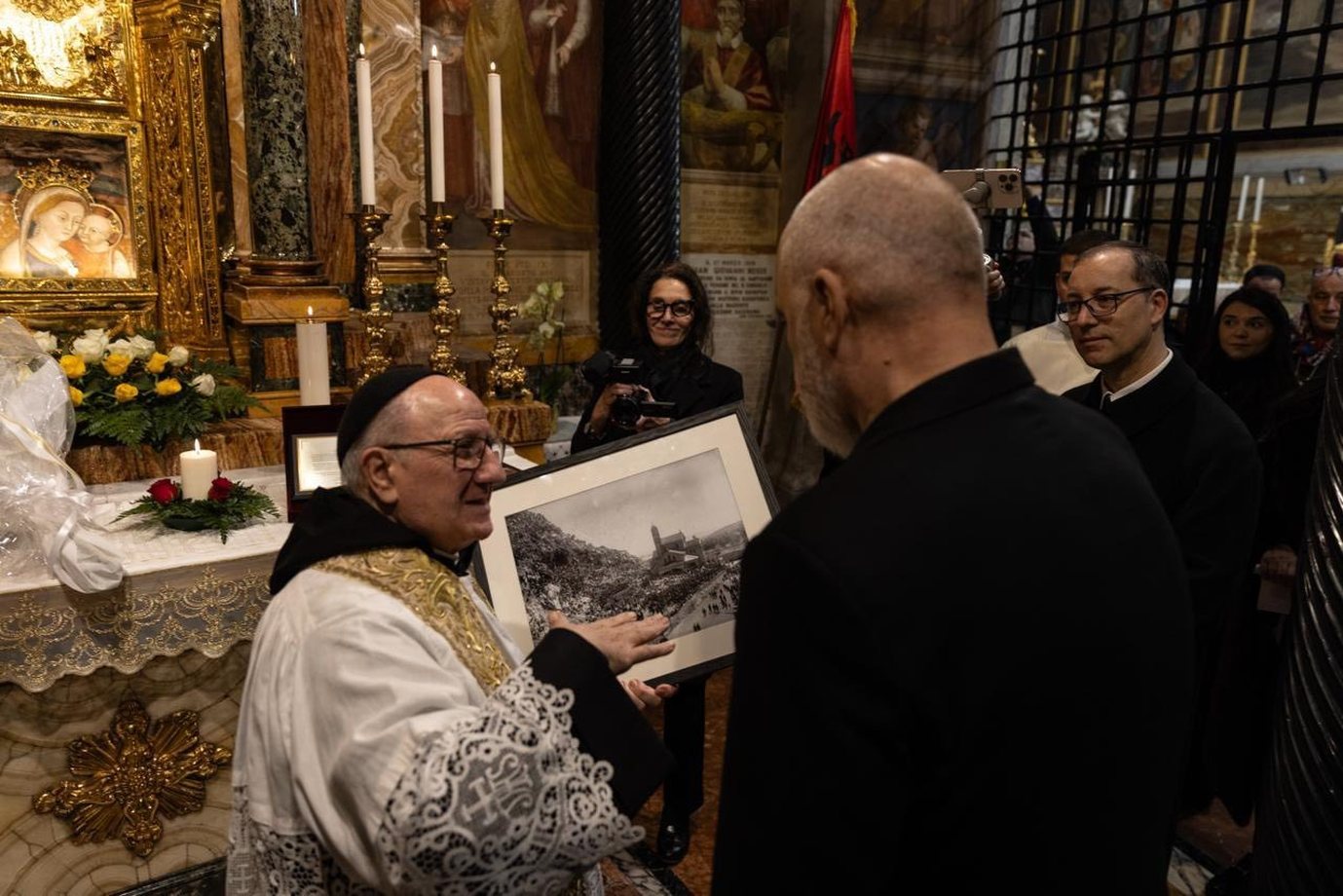“Që nga ajo kohë asnjë kryetar shteti ose qeverie shqiptare nuk e kishte shkelur pragun e bazilikës, ku krah Zojës së Shqipërisë qëndron përherë edhe flamuri ynë kombëtar, e ku kanë kryer vizita e rite thuajse të gjithë Papët e Romës. Gjëja e parë që bëri edhe Papa Leoni XVI sapo u zgjodh, ishte vinte e të lutej në Genazzano te Zoja e Shqipërisë që thirret edhe Regina di Albania - Mbretëresha e Shqipërisë”, shkruan Rama. (A2 Televizion)