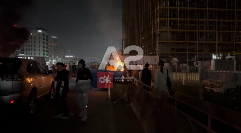 Pas tensioneve dhe përplasjes mes protestuesve dhe forcave të FNSH-së, të kthesa e Kamzës së fundmi protestuesit i kanë vënë flakën gomave dhe kazanëve të plehrave. Zjarri është në vendin ku protestuesit kanë lënë makinat për të bllokuar rrugën.