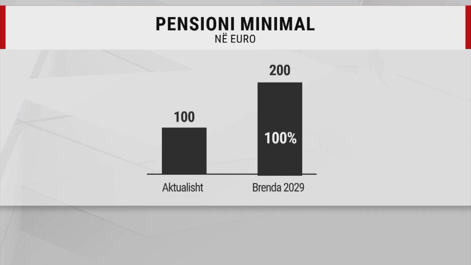 Ndërkohë brenda vitin 2029 pensioni minimal pritet të dyfishohet. Nga rreth 10 mijë lekë aktualisht, pagesa mujore për të moshuarit dhe kategoritë e tera përfituese të pensioneve do të jetë së paku 20 mijë lekë.