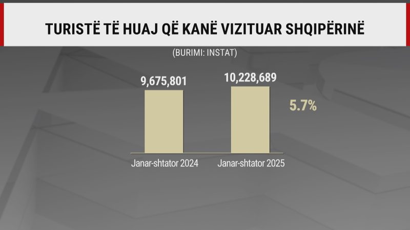 Shqipërinë e vizituan muajin e shkuar mbi 1.2 milionë pushues të huaj duke e zgjatur kështu sezoni veror edhe me një muaj. Të dhënat nga Instituti i Statistikave tregojnë se në raport me shtatorin e një viti më parë, numri i turistëve është rritur me 9.9 për qind. Marrë që nga fillimi i vitit rezulton që në vend të kenë hyrë mbi 10.2 milionë të huaj nga 9.6 milionë në janar-shtator 2024.