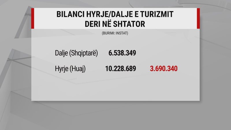 Të dhënat nga INSTAT tregojnë se në harkun e muajve janar-shtator në vend hynë mbi 10.2 milionë të huaj, rreth 3.7 milionë më tepër se shqiptarët që dolën jashtë. (A2 Televizion)