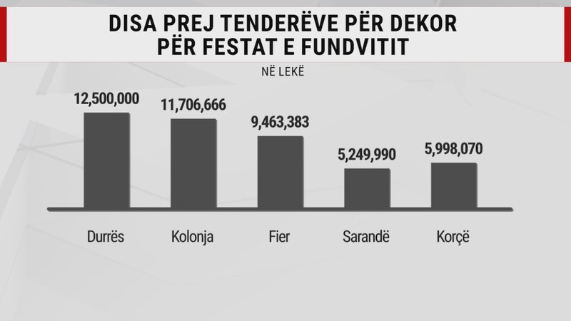 Tender për blerjet e zbukurimeve për këtë fundviti kanë hapur edhe Bashkia Sarandë dhe Korçë me buxhete përkatësisht 5.2 dhe 5.9 milionë lekë.