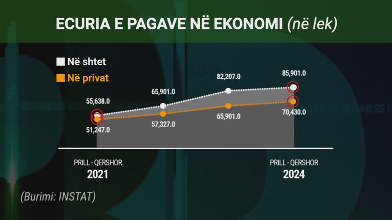 Niveli i pagave është rritur, si në sektorin publik, ashtu edhe në atë privat. Të dhënat tregojnë se pagat më të larta janë në shtet. Paga mesatare në administratë ka arritur këtë vit në rreth 86 mijë lekë, ndërsa ajo në mbi 70 mijë lekë.