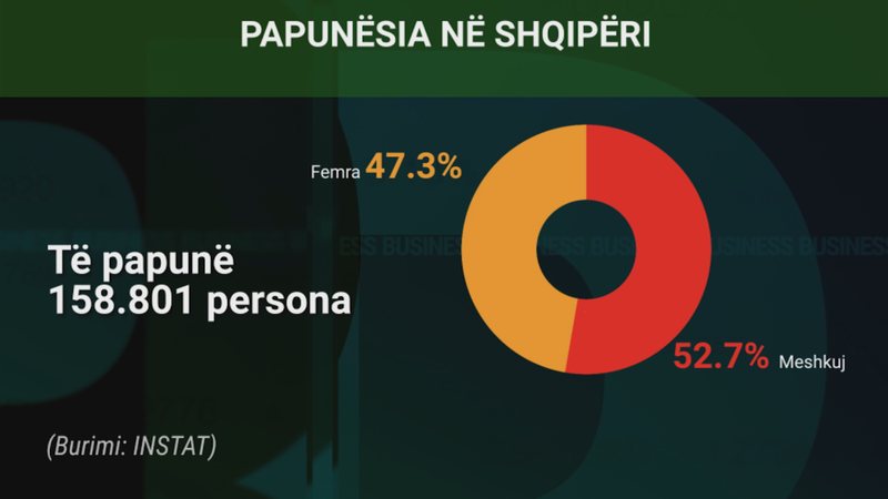 Të paktën zyrtarisht rezultojnë mbi 158 mijë persona pa një vend pune, nga të cilët 52.7% janë meshkujt dhe 47.3% janë gra.