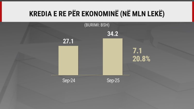 Kreditimi i ekonomisë iu kthye rritjes në muajin shtator, pas një ngadalësimi të lehtë në dy muajt paraardhës. Qytetarët dhe sipërmarrësit shqiptarë morën gati 307 miliardë lekë kredi deri në shtator. Për blerje banesash, në 9-mujorin janar-shtator, u morën në banka nga qytetarët mbi 50.6 miliardë lekë kredi.