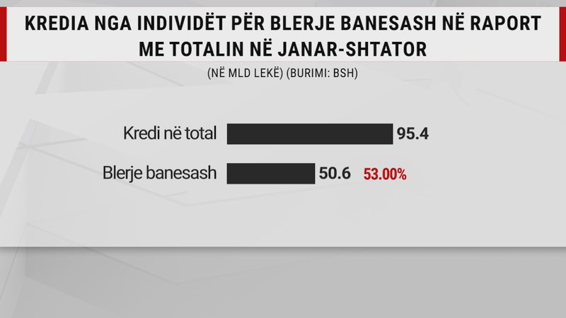 Të dhënat nga Banka Qendrore tregojnë se për blerje banesash, në 9-mujorin janar-shtator, u morën në banka nga qytetarët mbi 50.6 miliardë lekë kredi. Kjo shumë është sa 53 për qind e huasë së re të dhënë në këtë periudhë kohore.