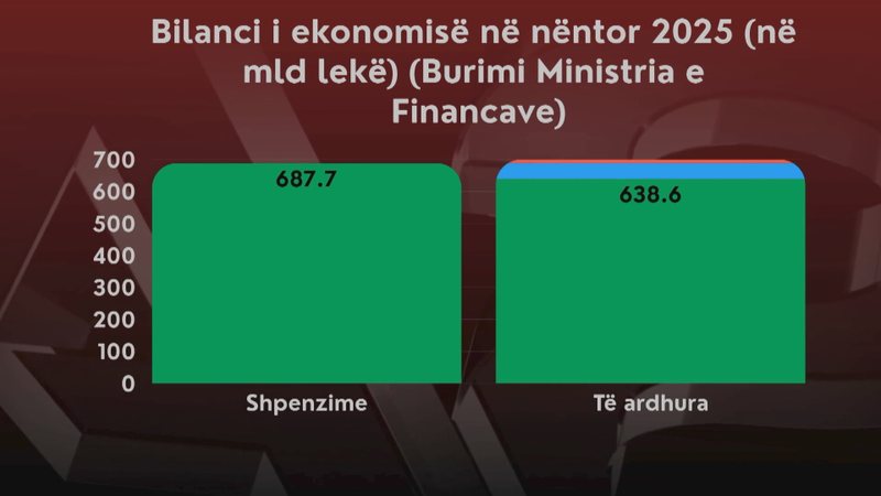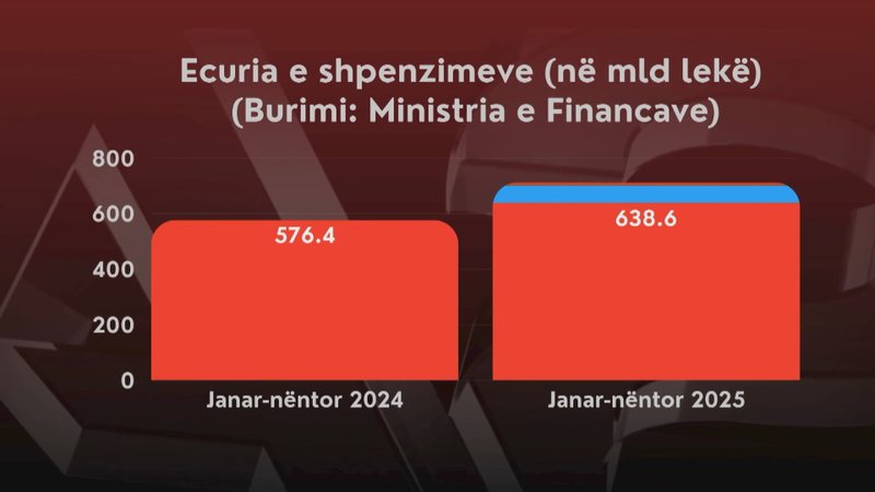 Ndërsa shpenzimet në fund të nëntorit arritën në 638.6 miliardë lekë, në rritje me 57.5 miliardë lekë në raport me janar-nëntorin 2024.
