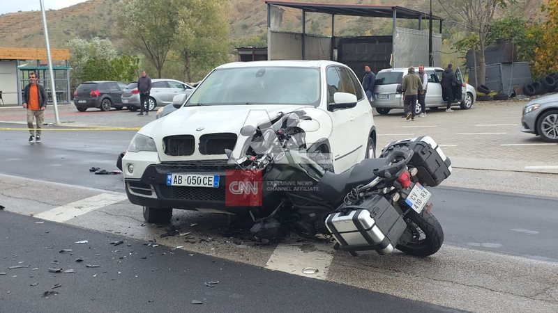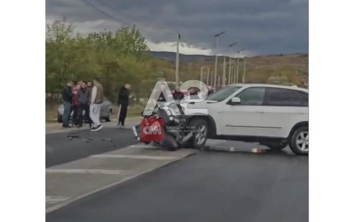Nga pamjet filmike të siguruara nga A2 CNN shihet se një automjet ka përplasur një motor, ku dy personat që udhëtonin me këtë të fundit kanë mbetur të lënduar.