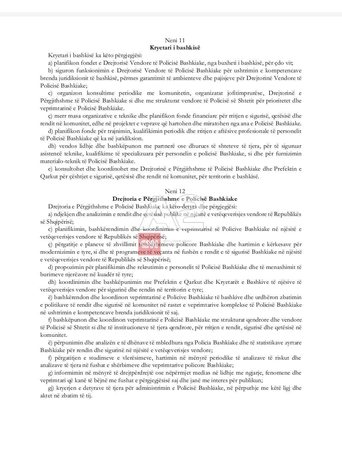 Sipas draftit, Policia Bashkiake do të ketë një rol më të zgjeruar në fushën e rendit dhe sigurisë publike, duke u shndërruar në një strukturë mbështetëse për Policinë e Shtetit. Policia bashkiake do të jetë më e angazhuar për rendin dhe sigurinë prandaj edhe drejtori i përgjithshëm i policisë bashkiake nuk do të jetë në varësi të pushtetit vendor, por do të kalojë nën varësinë e Ministrisë së Brendshme.
