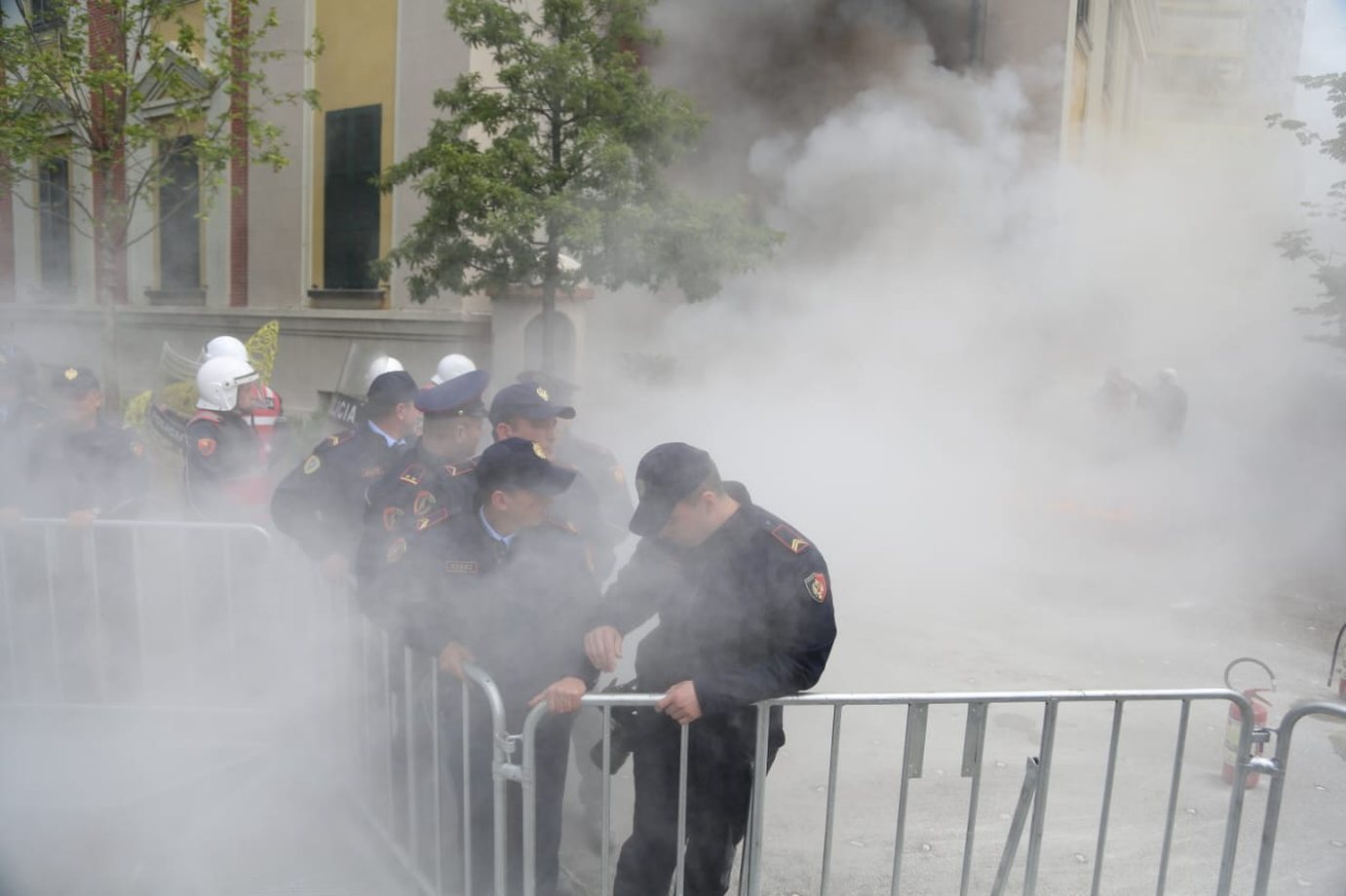 Ndërkohë, Tedi Blushi nga Partia e Lirisë, me një flamur shqiptar në dorë, u mundua që të kapërcente kordonin policor me ndihmën e protestuesve të tjerë që e ngrinin, por pa sukses.