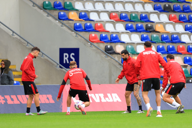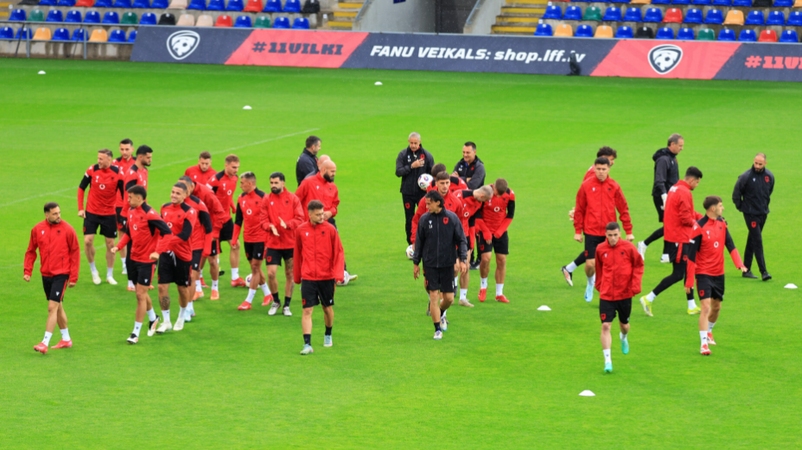 Kombëtarja shqiptare ka zhvilluar seancën zyrtare stërvitore në stadiumin “Skonto” të Rigës pasditen e të hënës.